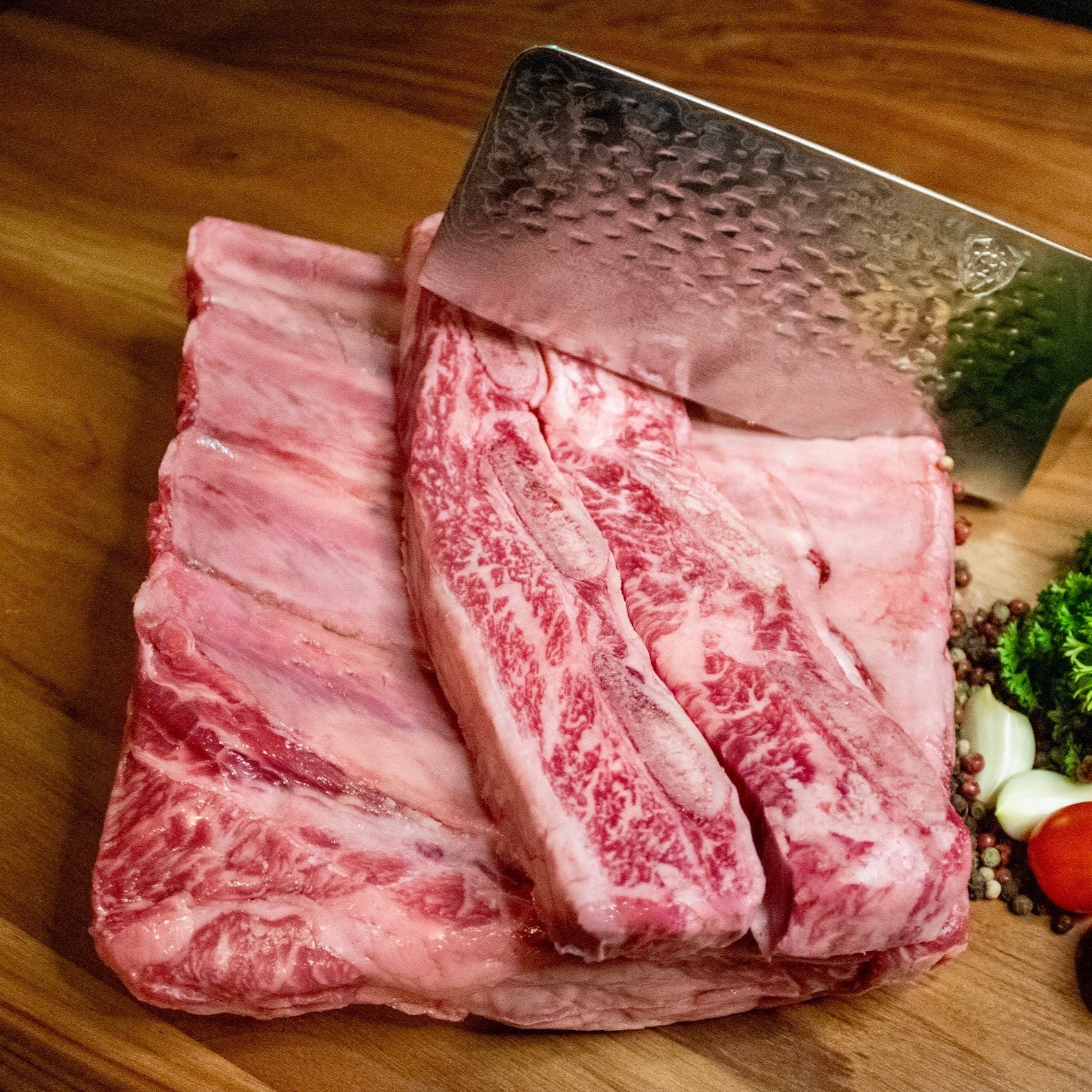 Our Texas Wagyu Chuck Tablitas are thinly sliced, bone-in cuts from the chuck section of our Wagyu-Angus cross cattle. These cuts are popular in Tex-Mex cuisine, often grilled quickly over high heat and enjoyed with tortillas, fresh salsas, and lime.